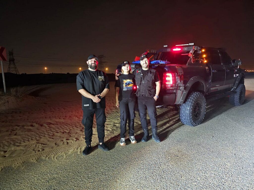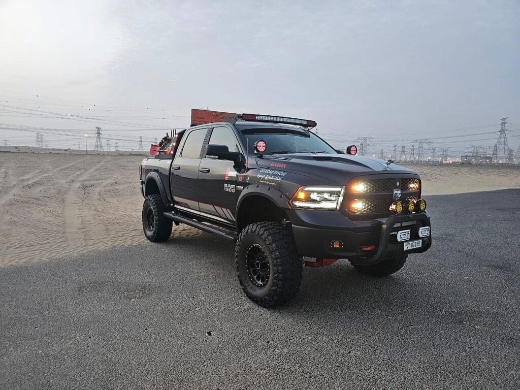 Araçları sıradan bir 4×4 değil. 2015 yılında 100.000 Dh’ye satın alınan ve ardından başka bir 100.000 Dh’yle değiştirilen devasa bir RAM kamyonu. “Daha iyi süspansiyon için kaldırıldı, daha büyük lastikler ve jantlarla donatıldı ve yüksek yerden yükseklik için 11 inç yükseltildi. Telsiz, GPS, dört taraftaki arazi ışıkları, projektörler, projektörler ve sürücü koltuğundan çalıştırılan gelişmiş bir SOS kontrol sistemi gibi bir kurtarma görevinin ihtiyaç duyabileceği her şeyle donatılmıştır ”dedi.