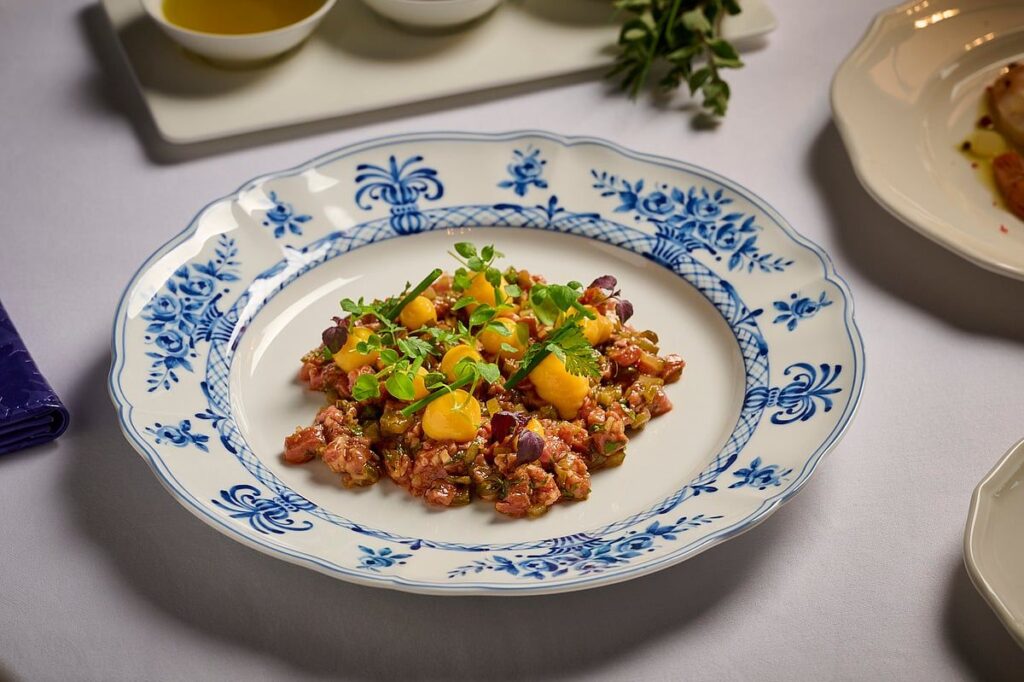 Güney Fransa’nın güneşe bulanmış mutfağından esinlenen menü, Akdeniz lezzetlerine bir aşk mektubu gibi okunuyor. Ana etkinlik olarak kolayca yer alabilecek yeni başlayanların çökmekte olan bir yayılımıyla başladım. Tütsülenmiş karpuz ve nane ile eşleştirilen Burrata, Dubai sıcağına serin ve kremsi bir kontrast sundu — eğlenceli ve ferahlatıcı bir ısırık. Ricotta ve traşlı siyah trüf ile doldurulmuş Trüf Pizzası, klasik bir konfor yemeğine lüks bir yükseltmeydi. Dünyevi ve zengin, Truffle &er; Parmesanlı Risotto bir umami bombasıydı, yaşlı parmesan ve kızarmış mantarlarla daha da dayanılmaz hale getirildi. Ama göze çarpan? Çıtır patatesin üzerine yerleştirilmiş Sığır Eti Tartarı – cesur, keskin baharatlarla dokusal mükemmellik.