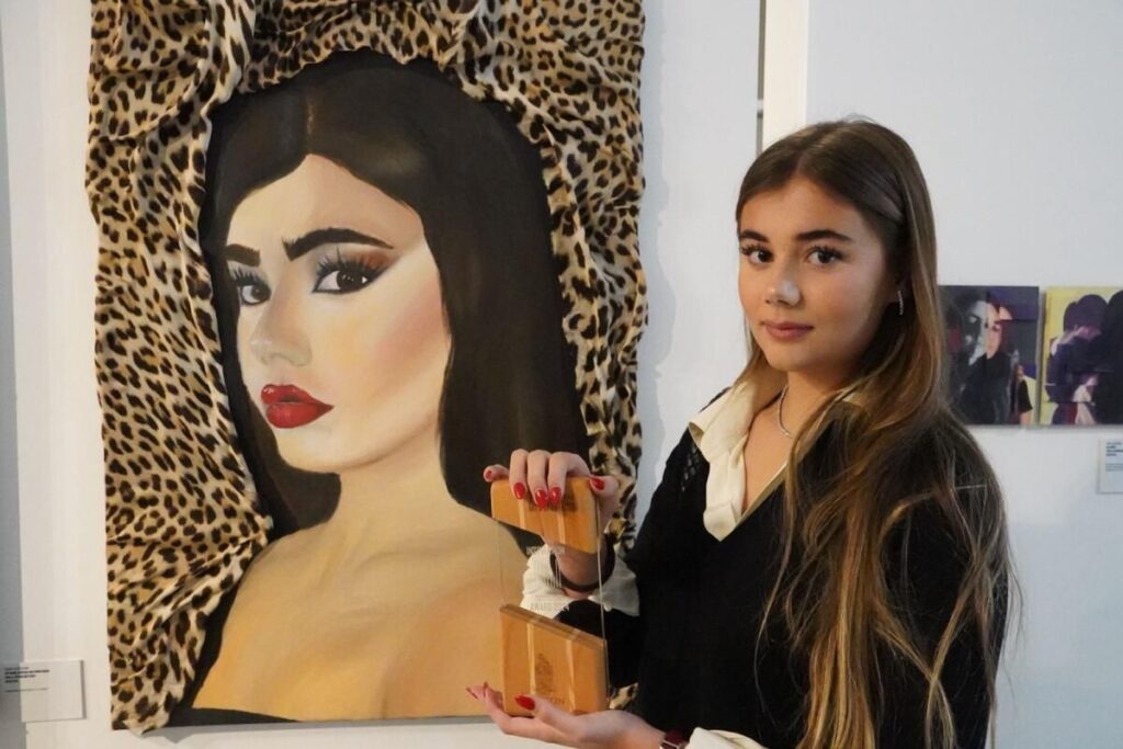 Leopar desenli ve evini süsleyen ikonik desenlerle çevrili büyüyen 15 yaşındaki Dubaili öğrenci Marie Ava Iacoviello, sanat ve tasarımın dönüştürücü gücüne yakından tanık oldu. Efsanevi İtalyan moda tasarımcısı Roberto Cavalli’nin torunudur ve sanat dünyasına damgasını vurmaya başlamıştır.Marie kısa süre önce Alserkal Caddesi’nde düzenlenen bir sanat sergisinde kendi portresini sergiledi. Parçası, Cavalli’nin başını çevreleyen ikonik leopar baskısından oluşan bir ‘taç’ içeriyordu – bu onun için önemli bir motifti.Repton Dubai’deki 12. Sınıf öğrencisi Khaleej Times gazetesine verdiği demeçte, ”Leopar baskısı bir kalıptan daha fazlasıdır.” dedi.