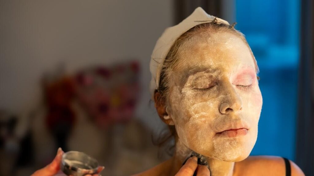 * Barok bir zombi prensesi olmanın nasıl bir şey olduğunu hiç merak ettiniz mi? Havalı görünüm için bu öğreticiyi izleyin:* Yüzü temizleyin ve cildi hazırlamak için biraz astar kullanın.* Bir kağıt çubuk tutkal kullanarak kaşları yapıştırın, spatula kullanarak bastırmadan önce saçı fırçalamak için rimel biriktiricisi kullanın.* Çürük çarkı paletinden sarıyı seçin ve nemli bir sünger veya fırça kullanarak yüzün yarısına ve boynuna uygulayın. Bu senin zombi taban rengin.* Doku oluşturmak için haki yeşilinin bir kısmını ekleyin ve sarının üzerine rastgele lekeler ekleyin.* Çürük çarkından, göz yuvasının içini, elmacık kemiğinin altını, şakağı, çene kıvrımını ve ağzın köşelerini konturlamak için bir fırça kullanarak koyu kırmızı ve moru karıştırın. Bu şekillendirmeyi çene çizgisinin altına uzatabilirsiniz.