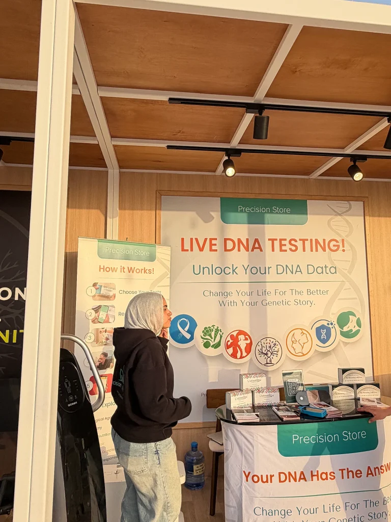 Yakınlarda ziyaretçiler ayrıca beslenme, zindelik, uyku, cilt, bağışıklık ve ilaç tepkisi gibi alanları kapsayan raporlar sunan Precision Health ile canlı DNA testinden& nbsp;geçebilirler.Precision Health’in iş geliştirme yöneticisi Malak Amr, testin genetik verileri pratik içgörülere dönüştürmek için tasarlandığını açıkladı.