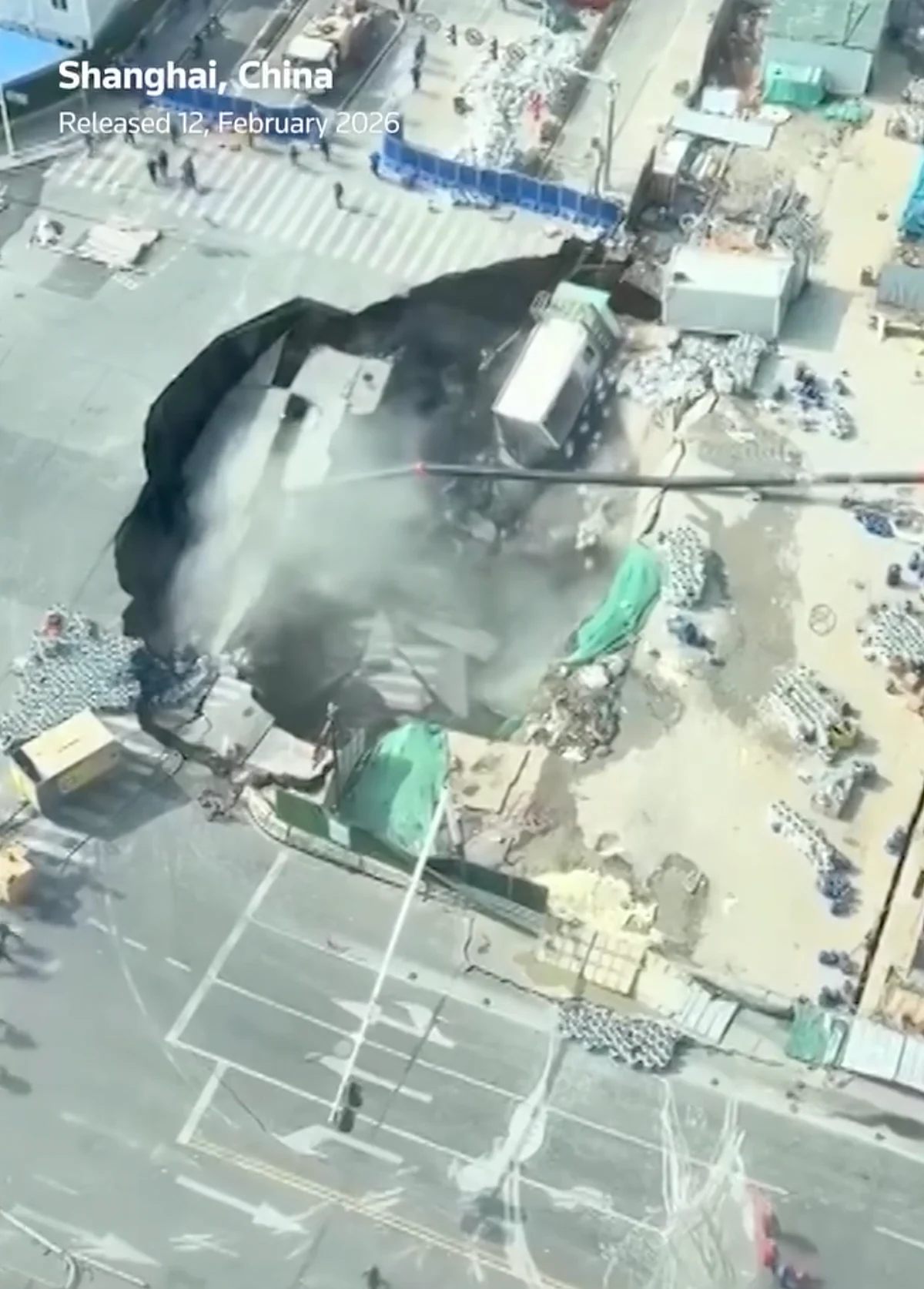 Bir AFP muhabirine göre, Cuma günü Şangay’daki bir şantiyede, yerin çöktüğünü gösterdiği iddia edilen dramatik görüntülerin viral hale gelmesinden bir gün sonra, açık bir çukur görüldü.