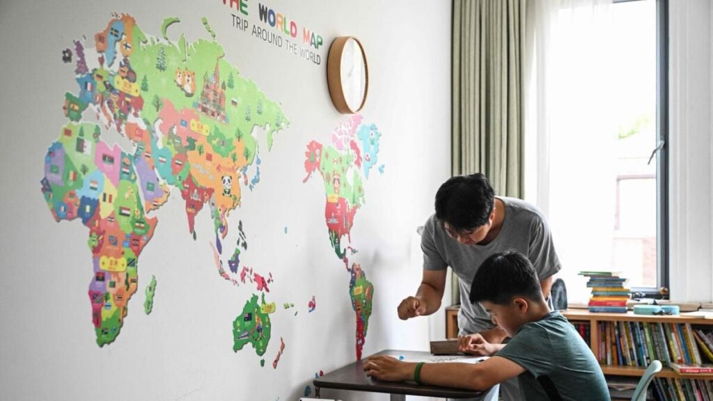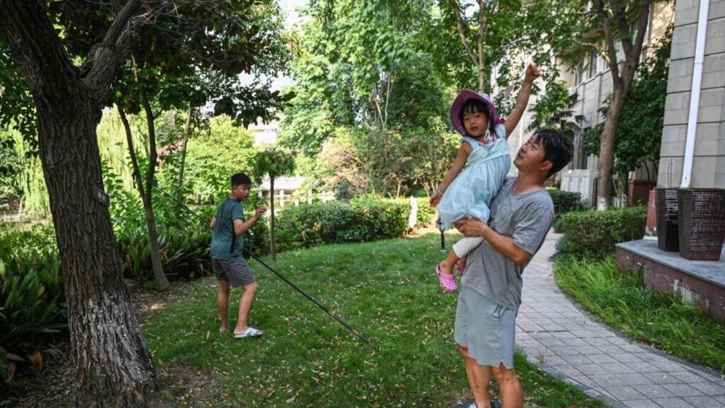 Oğlu Elvin Şanghay’daki evlerinin yakınında böcekleri yakalamaya çalışırken Chen Hualiang kızını kucağında tutuyorÇin’in güneyindeki Zhuhai kentinden bir içerik yaratıcısı ve eğitim girişimcisi olan 37 yaşındaki Chang Wenhao, bir dönüşüm.Yedi yaşındaki kızı ve beş yaşındaki oğlu için çalışma saatlerini yüzde 80 müsait olacak şekilde ayarlayarak onları kampa, ata binmeye, bisiklete binmeye ve yürüyüşe çıkardı.“Eğitim yöntemleri, cesaretlendirme, özgüven oluşturma, becerilerini geliştirme, yaşamdaki bağımsızlıkları açısından onlara okulda veya diğer yetişkinlerden öğrenmedikleri şeyleri getiriyorum” dedi.