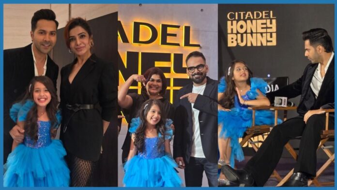 Gösteride ebeveynlerinin rollerini oynayan aktörler Samantha Ruth Prabhu ve Varun Dhawan ile sette çekim yapmak Kashvi için unutulmaz bir deneyimdi. “İlk gün kızarmayı ve gülmeyi bırakamadım çünkü Varun bhayya ile tanıştığım için çok heyecanlıydım” diyor ve hala sevinçle parlıyor.