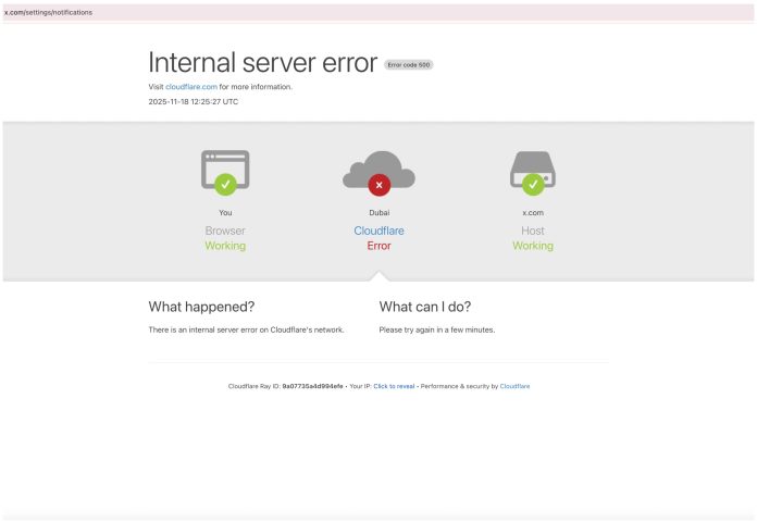 Eskiden Twitter olarak bilinen sosyal medya platformu X de dahil olmak üzere birçok web sitesinin yüklenememesi üzerine Salı günü binlerce kullanıcı panik moduna geçti. Canva, OpenAI ve Spotify gibi diğer büyük platformlar da vurulmuş gibi görünüyor. Birleşik Arap Emirlikleri’ndeki kullanıcılar, çeşitli web sitelerine erişimde sorunlarla karşı karşıya kaldı ve bu da işyerlerinde aksamalara yol açtı.