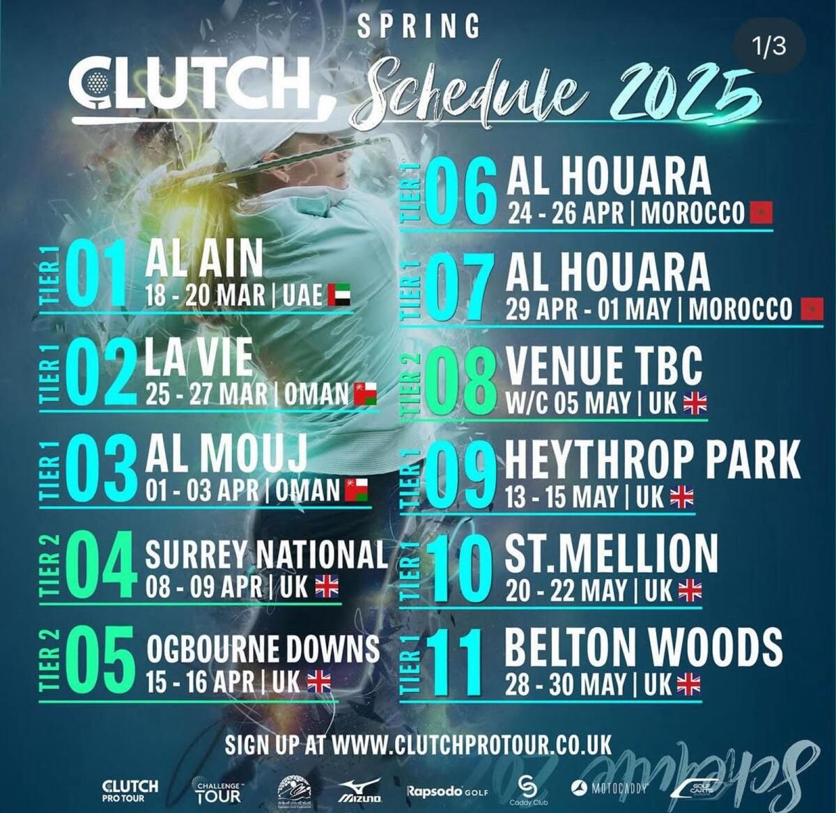 Daha önce duyurulmuş olan 11 etkinlikle tur, Mart ayı ortasında BAE’deki Al Ain Binicilik, Atış ve Golf Kulübü’nde başlayacak ve ardından La Vie ve Al Mouj Golf’te çift başlık için Umman’a gidecek heyecan verici bir sezon için hazırlanıyor.