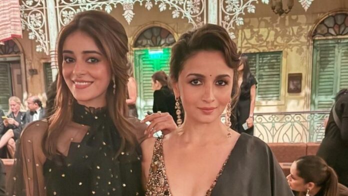 Aditi Rao Hydari, ağır bir şekilde süslenmiş dupatta ile eşleştirilmiş siyah altın işlemeli bir anarkali’de zarafet yaydı.Ananya Panday