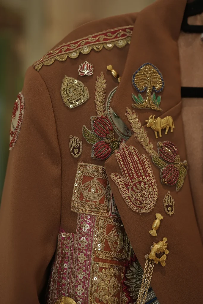 Masaba Gupta (MG): Şenlik düşüşü, neşeyi renkli, zanaatkar ve tavırla kutlamak isteyen bir alandan geldi. Dubai’nin kendine güvenen bir kitlesi var ve bu enerji beni her zaman biraz daha yüksek, biraz daha dramatik parçalar tasarlamaya itiyor. Buradaki insanlar ifade giyinmeyi severler ama aynı zamanda rahatlığı ve çok yönlülüğü de takdir ederler, bu yüzden bu dengeyi bulmaya çalışıyorum. Varakh çizgisi ve Masaba Adamı her ikisi de festival kıyafetlerini özel ama yine de zahmetsiz hissettirme fikrinden geldi.