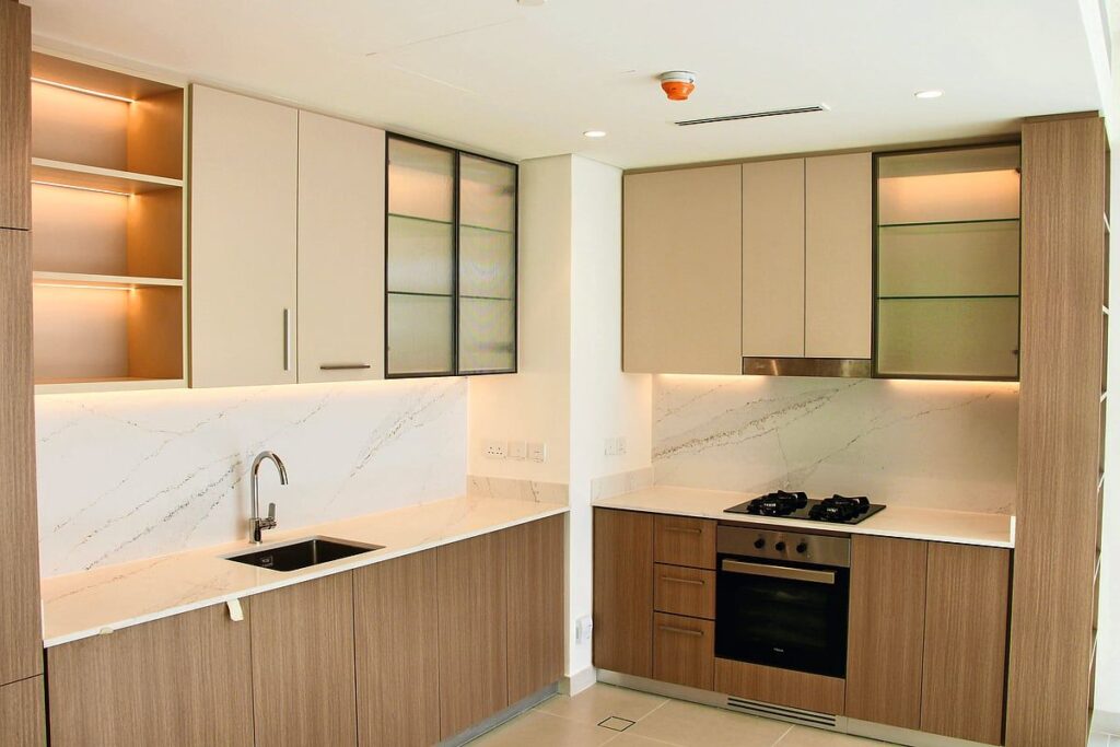Geliştirici onayları için geçici bir model olarak inşa edilen 240m2’lik yapı, lobi ve ana giriş ile tamamlanmış bir ve iki yatak odalı daire düzenlerine sahiptir. Yapıda, farklı iklim koşullarında uzun vadeli performans için kritik bir faktör olan malzemenin mukavemetini, su direncini ve endüstri lideri yangın direncini vurgulayan 350’den fazla DesertBoard PSB® paneli kullanıldı. Özellikle ve bölgenin en sürdürülebilir ahşap levhasını üretmenin yanı sıra, DesertBoard aynı zamanda bölgede sürdürülebilir yangına dayanıklı kapı göbekleri üreten tek üreticidir.