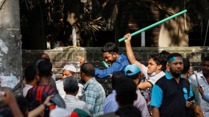 Bangladeş’in öğrenci liderliğindeki devrimini korumaya yemin eden çeteler, Perşembe günü devrik başbakan Şeyh Hasina için planlanan bir mitingin yapıldığı yerde dolaştı ve şüpheli destekçilerinden bazılarını bambu çubuklar ve borularla dövdü.