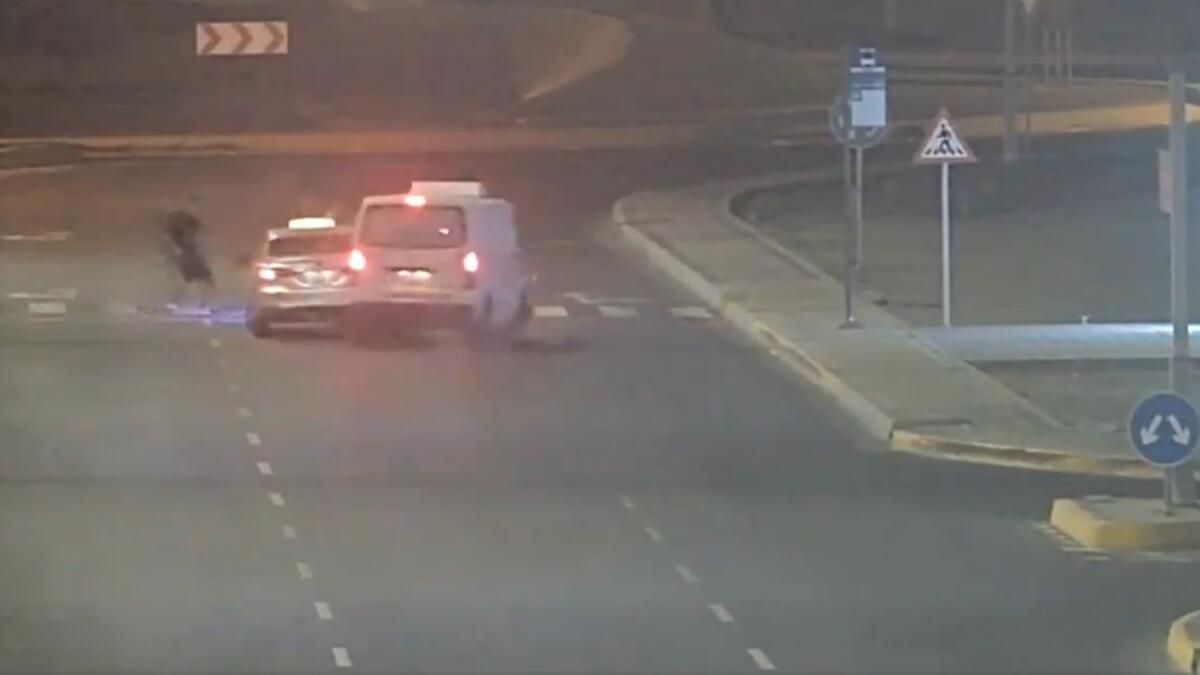 Abu Dabi Polisinin yol kameralarına, yaya geçidinde sabit bir taksi göremeyen dikkati dağılmış bir sürücünün neden olduğu bir trafik kazası yakalandı.