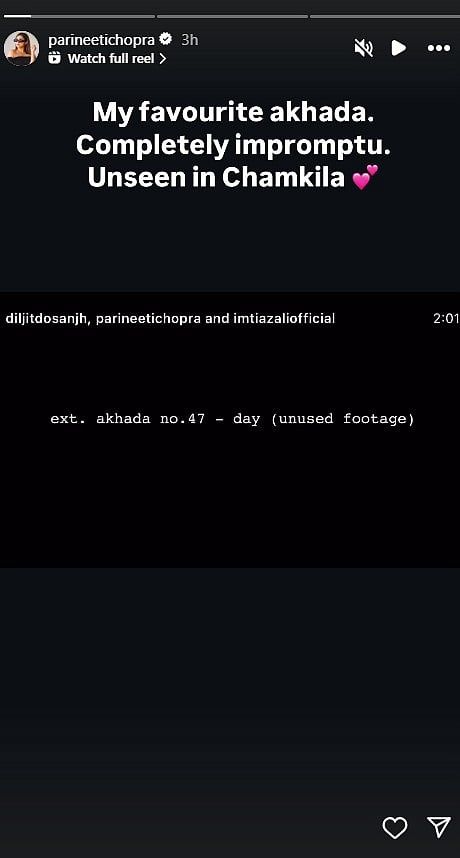 Yönetmen Imtiaz Ali de videoyu İnstagram Hikayelerinde paylaştı ve “Bu filmde kullanılmadı.” Parineeti Chopra videoyu yeniden yayınladı ve şöyle yazdı: “En sevdiğim akhada. Tamamen hazırlıksız. Çamkila’da görülmez.”