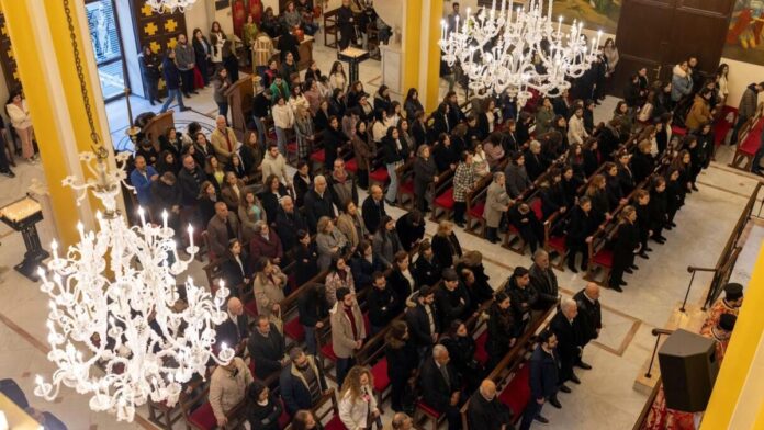 Lazkiye Metropoliti ve Rum Ortodoks Kilisesi’ne olan bağımlılıkları olan Athanasios Fahed, Pazar günkü Lazkiye’deki hizmete ve hareketli sabah havasında insanlarla dolu katedrale liderlik etti.