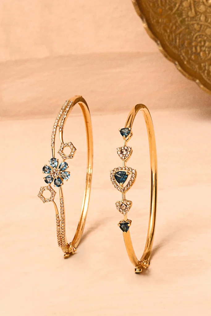 Rangoli – bir renk festivali: Tıpkı bir rangoli’nin bir evi canlı desenlerle aydınlattığı gibi, Rangoli koleksiyonu da kutlamanın özünü yakalar. Mirası modernite ile birleştirerek canlı değerli taşlar ve ustaca altın işçiliği sergiliyor. Şenlikli, cesur ve ruhlu Rangoli, sevincini mücevherleri kadar canlı giyenler için yapılır.