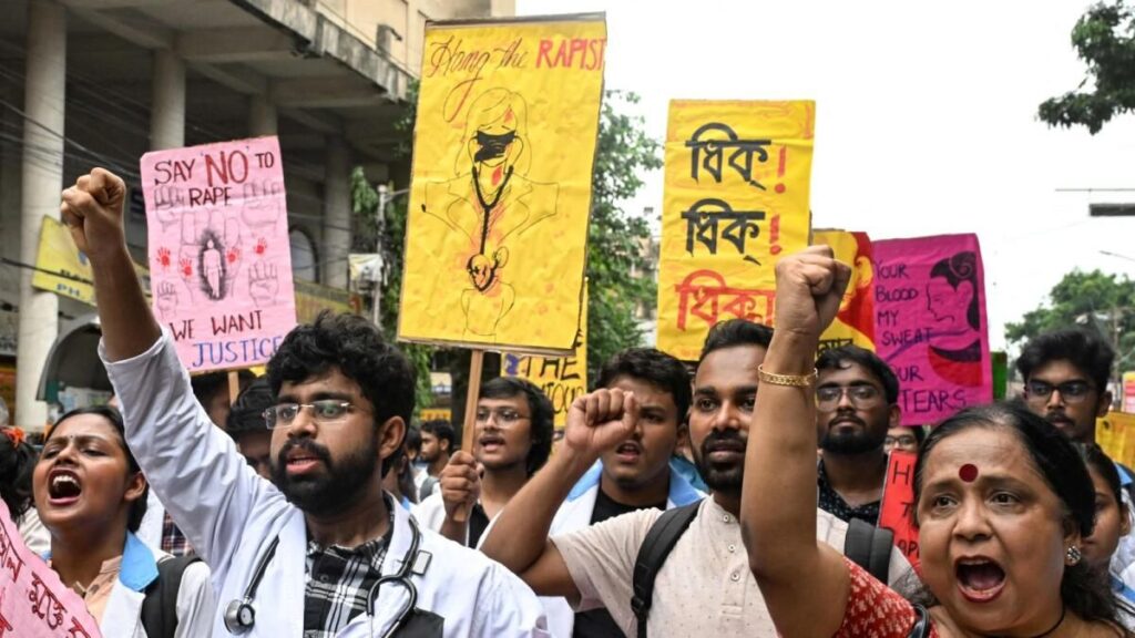 Aktivistler ve tıp uzmanları, genç bir sağlık görevlisine tecavüz ve cinayet iddiasını kınamak için Pazartesi günü Kalküta’da düzenlenen bir protesto sırasında sloganlar atıyor ve posterler tutuyorlar. Afp’ninReuters Televizyon görüntülerine göre başkent Yeni Delhi’de beyaz önlüklü genç doktorlar, soruşturma talep etmek için büyük bir devlet hastanesinin önünde protesto etmek için otururken “Doktorlar kum torbası değil” yazılı posterler düzenlediler.Basında çıkan haberlere göre, en kalabalık Uttar Pradesh eyaletinin başkenti Lucknow ve bazı hastane hizmetlerini sakat bırakan batıdaki turizm beldesi Goa gibi şehirlerde binlerce hasta benzer protestolarla mahsur kaldı.Ülkedeki en büyük doktor grubu olan Hindistan Tabipler Birliği, Sağlık Bakanı JP Nadda’ya yazdığı bir mektupta, “Yaya çalışma koşulları, insanlık dışı iş yükleri ve işyerindeki şiddet gerçektir” dedi.