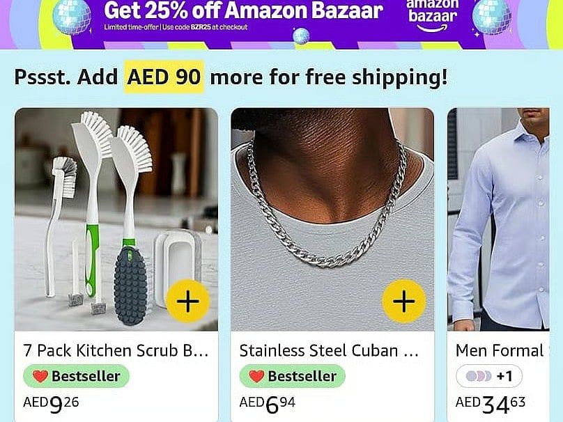 Amazon siparişlerinin Dh90 üzerinden teslimatı tamamen ücretsiz olacak ve çoğu ürün altı ila on iki gün içinde gelecek. Çevrimiçi alışveriş platformu kısa süre önce yalnızca BAE’de alışveriş yapanlar için ‘Amazon Bazaar’ adlı yeni bir bölüm başlattı.