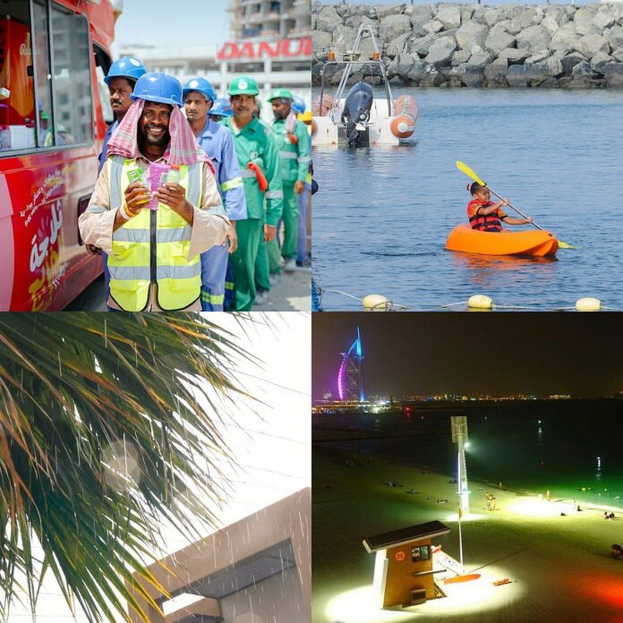 BAE’deki mavi yakalı işçilere, Al Freej Buzdolabı insani yardım kampanyasının bir parçası olarak ücretsiz dondurulmuş ikramlar ve meyve suları sunuluyor.Dehidrasyon ve ısı tükenmesi gibi ısıya bağlı sağlık risklerini azaltmak amacıyla kampanya, yoğun yaz aylarında Dubai’deki işçilere iki milyon içecek dağıtmayı hedefliyor.