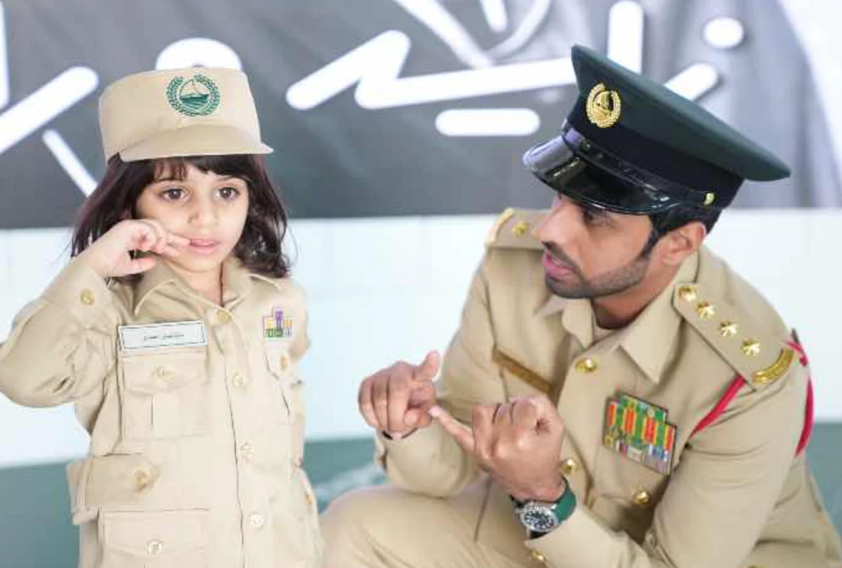 Memurlar, çocuğu ve ailesini Genel Komuta Karargahında karşıladı ve ona bir hatıra ve Dubai Polis üniforması hediye etti.