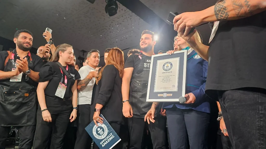 Bu büyük bir şey, bir saat içinde bir ekip tarafından gerçekleştirilen en sakalı düzeltir ve tıraş için Guinness Dünya Rekoru girişimi oldu. Burası 2025 Beautyworld Middle East at Fresha tarafından BeautyLive altına aldı, STMNT Tımar ile işbirliği içinde.