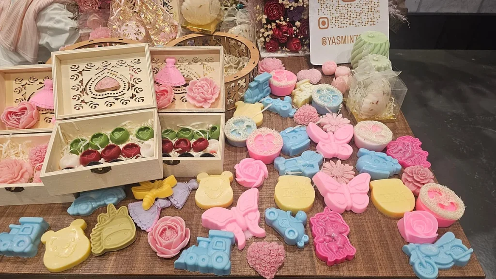 Zeytinyağı ve doğal malzemelerle yapılan geleneksel el yapımı Suriye sabununa özel bir köşe ayrıldı.