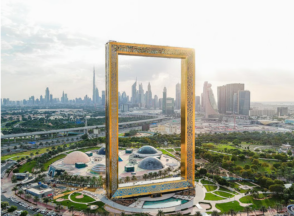 Zabeel Parkı’nın içinde yer alan Dubai Frame, 150 metre yüksekliğindedir ve emirlik manzarasının kuşbakışı manzarasını sunmaktadır. Bir tarafta şehrin geçmişine bir bakış sunarken, diğer tarafta şehrin ışıltılı ve göz alıcı hediyesini gösteriyor.