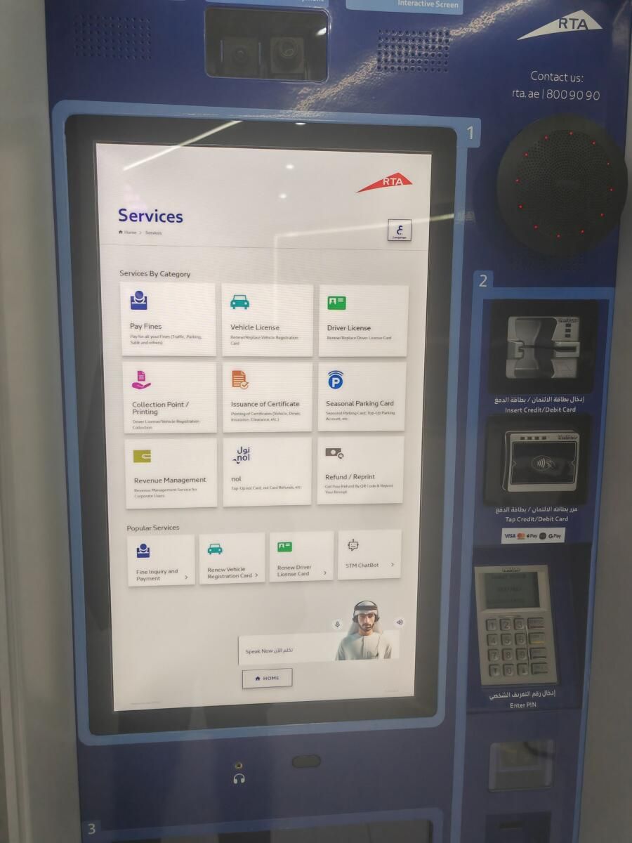 Rta’nın kioskları, para cezası ödemesi, araç ve ehliyet, sertifika verilmesi ve sezonluk park kartı ve diğerleri dahil olmak üzere bir dizi hizmet sunmaktadır. RTA, müşterilerine taksit planı sunan ilk Dubai kuruluşlarından biridir. Otoritenin emirlik genelinde 30 akıllı büfesi var.