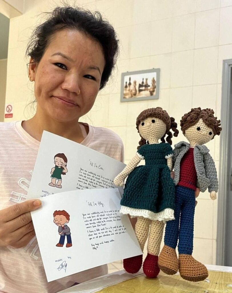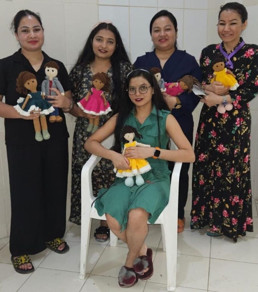 “Tığ işi yapmaktan gerçekten zevk alıyorum. Bebeğin ayakkabılarını önce tek bir kroşe dikişle ilmekle başlıyoruz ve ardından vücudunu, elbisesini ve saçını oluşturmak için örüyoruz ”diye paylaştı son üç ayda 10 bebek yaratan Gurung.”Bebekleri, elbiselerini, şapkalarını ve saçlarını tığ işi yapmanın tüm yaratıcı sürecinin birçok resmini tıklıyorum ve bunları kocam ve çocuklarımla paylaşmaya devam ediyorum” diye ekledi.