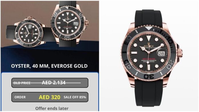Önemsiz bir Dh320 için Rolex saat sunan bir Facebook gönderisi gördünüz mü? Saat severler ve koleksiyonerler için bu bir rüyanın gerçekleşmesi gibi görünebilir ama aslında gerçekleşmeyi bekleyen bir kabustur. Siber suçlular, şüphelenmeyen kurbanları sofistike bir kimlik avı dolandırıcılığına sürüklüyor.Gönderi, Dubai Mall’daki Rolex mağazasının, bir YACHT-MASTER 40 saatini% 65 indirimle yakalamaya hevesli ezici kalabalıklar nedeniyle geçici olarak kapalı olduğunu iddia ediyor. Bununla birlikte, saatlerin Rolex’in resmi web sitesinde mevcut olduğu ve bir bağlantı aracılığıyla Emirlikler genelinde ücretsiz olarak teslim edilebileceği iddia ediliyor.