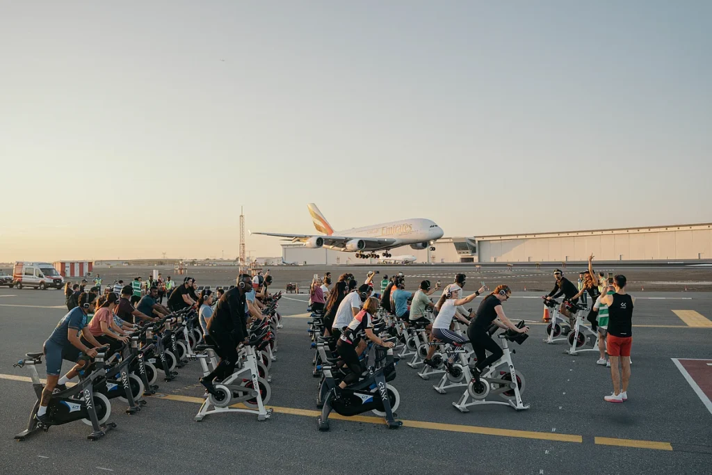 Öne çıkmak istiyorsanız, serbest tişörtten kaçının ve Şeyh Zayed Yolu’nun ışıltılı mimarisini yansıtmak için Mona Kattan’ın Kahraman Sporu ile ortak çalışmasından metalik detaylı bir parça tercih edin. Gerçek bir pist deneyimi için, bu yıl sakinler, 200 uçak gösterisiyle çevrili Dubai Airshow’da Pist Koşusu açılışına kaydolabilirler. Ya da, canlı bir uluslararası havaalanı pistinde dünyanın ilk eğirme sınıfı, butik BAE fitness stüdyosu CRANK ‘in DXB ile ortak olduğu ve Emirates A380’lerin uçuş yolu altında eğirme sınıflarına ev sahipliği yapmak üzere ikinci bir yıllığına geri döner.. Ayrıca Dubai Akvaryum Tüneli‘nde (Alo Yoga’nın ’Mavi Taş’ renk yolu için mükemmel) ses iyileştirmesi, Hatta‘de ayakta duran kürek tahtalarında gün batımı yogası (Adidas x Farm Rio