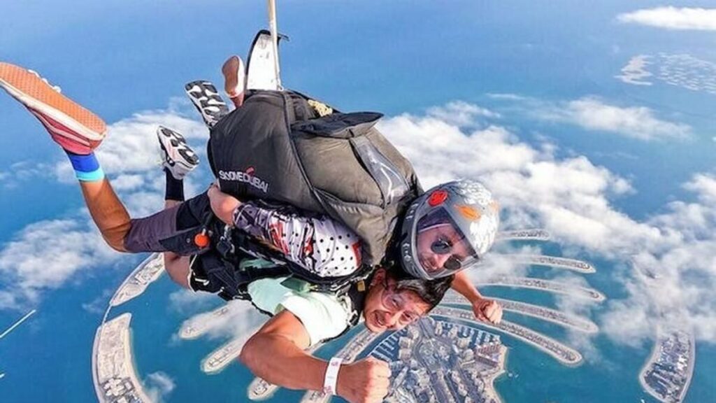 Özel bir etkinliği kutlamak istiyorsanız veya gökyüzünde türünün tek örneği bir macera arıyorsanız, Balloon Adventures Dubai ile sıcak hava balonu gezintisine çıkmayı düşünün. Güne çölün yukarısında, gökyüzünde 4.000 metreye yükselen heyecan verici bir yolculukla başlayın. İrtifayı seven ve kova listesinden bir sıcak hava balonu yolculuğunu geçmek isteyen herkes için mükemmel, unutulmaz bir heyecan. Kişi başı fiyat 1.350 Dh’dir.Paraşütle atlama