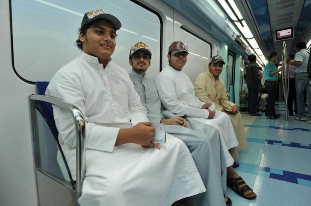 Genç Emirlikler ilk Dubai Metrosunu 10 Eylül 2009’da deneyimliyorlar. Fotoğraf: dosyaPaul ayrıca şehrin çok iyi bağlantılı olduğunu ve Metronun o kadar sofistike ve kullanımı kolay olduğunu ve onun için bir cankurtaran olduğunu da sözlerine ekledi. Jennifer, “Başka yerlerden misafirlerimiz olduğunda, trafiğe takılmadan veya park yeri aramak zorunda kalmadan bir yerden diğerine atlamak çok daha kolay” dedi.Bir üniversite öğrencisi olan Fatima Amal, son dokuz yıldır kendini işine adamış bir Dubai Metrosu banliyösü, okul yıllarında kullanıyor ve üniversiteye devam ediyor. Ona göre Metro, etrafta dolaşmanın uygun bir yolundan daha fazlasıdır — öğrenci yaşam tarzına mükemmel şekilde uyan uygun maliyetli ve çevre dostu bir çözümdür.
