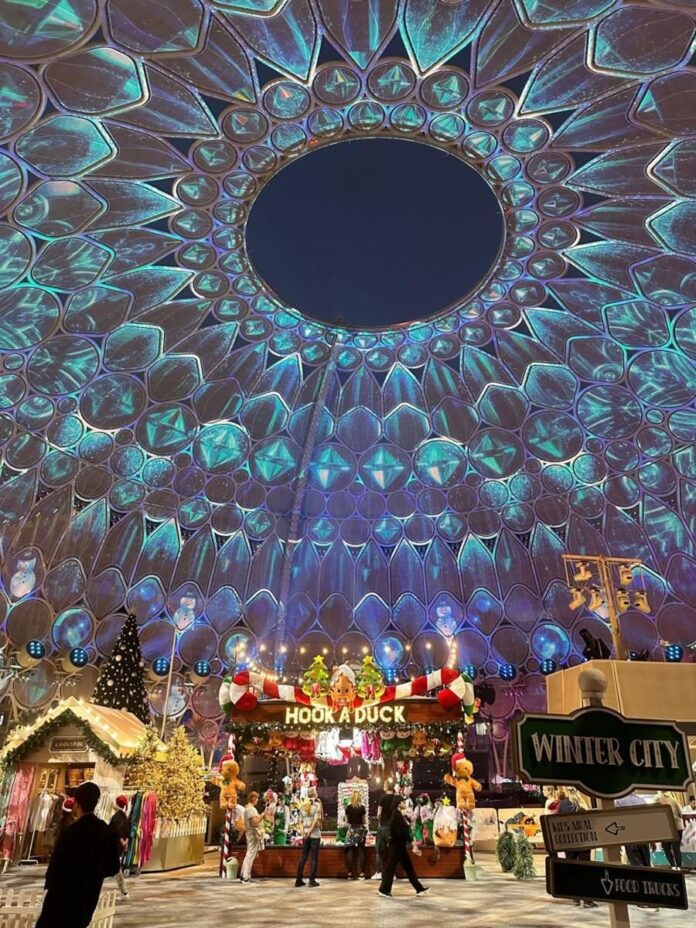 Expo City Dubai’deki Al Wasl Plaza’nın bir Kış Kentine dönüştüğü yine yılın o büyülü zamanı.Resmi olarak 6 Aralık Cuma günü açılan ve 31 Aralık’a kadar sürecek festival sezonu dev bir Noel ağacının aydınlatılmasıyla başladı.Bu yılki Kış Şehri, mevsimsel çekicilikle dolu herkes için bir şeyler vaat ediyor. Her yaştan ziyaretçi Noel Baba ile tanışmanın tadını çıkarabilir, neşeli elflerin ev sahipliği yaptığı eğlenceli atölyelere katılabilir veya sadece Kuzey Kutbu atmosferiyle dolu bir pazarda dolaşabilir.“(Ayrıca) küçük bir tatil kaosunun işleri yoldan çıkardığı ve hediye dağlarının düzenlenmesi gereken oyuncak fabrikasına da girebilirler. Ya da yaramazları iyilerden ayırırken Bayan Claus’a yardım edebilirler “dedi.Sakinleri ve turistleri Noel kurabiyelerini süslemek, kart yapmak ve diğer şenlikli eşyalar yaratmak gibi çeşitli aktiviteler bekliyor.