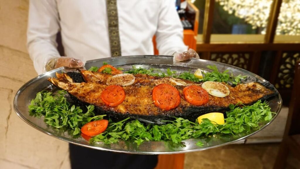 Bir yemek turu sırasında bir Irak yemeği olan Masgouf’u tadınTahmin edebileceğiniz gibi, yemek turuna çıkmak rahat ayakkabılar, bol pantolonlar ve güçlü bir iştah gerektirir. Ama yemek artıkları mutlaka vardır. Yiyecekleri boşa harcamamak için Frying Pan Adventures, bunu ileriye ödemek için bir plan hazırladı. “Yaptığım şey kasiyerlere veya garsonlara gidip, ‘Bak, bu yemeğe elimiz değmedi; kendimize hizmet etmek için çatal bıçak takımı kullandık. Bu yiyeceğin yemek isteyen birine verilmesini sağlamama yardım edebilir misin? Birine yiyecek vererek iyilik yapıyormuş gibi konuşamazsın, çünkü yapmıyorsun. Yiyecek israfını azaltmanıza yardımcı oluyorlar “diyor Farida.”Çoğu zaman, bazıları bunu kendi aralarında paylaşacak ya da sürekli teslimat yapan çocukları olacak ve sokakları süpüren insanları görecekler ve hemen gidip onlara teklif edecekler” diyor ve birinin diğerine her zaman saygılı bir şekilde sorması gerektiğini de sözlerine ekledi. artıkları isterlerse kişi.Peki bu yemek turları bir araya getirildi mi? Farida, Dubai’de yetişen çocuklar olarak, kendisinin ve kız kardeşinin dünyayı tanıtmak istedikleri favori yemek yerlerinden oluşan bir rezervuara sahip olmalarına rağmen, restoranların adlarını da kitle kaynaklı olarak kullandıklarını açıklıyor. “Baklava dükkanı [Al Samadi Tatlıları] gibi, ailemin onu kendi başlarına bulup bulmadığını veya birinin aileme anlatıp anlatmadığını bile hatırlayamıyorum. 90’lı yılların ortalarından itibaren oradan baklava aldığımızı biliyorum. Ve sonra insanların bize önerdiği bazı restoranlar var. Bazen mahallede bir yer açılır ve yemeğin tura çıkmaya değer olduğunu görürüz “diyor.Şu anda, Frying Pan Adventures’ın iki tam zamanlı çalışanı var – Farida ve Arwa — ve yaklaşık beş serbest yemek rehberi. “Ekibimiz böyle görünüyor, çok küçük ama çok etkili.”