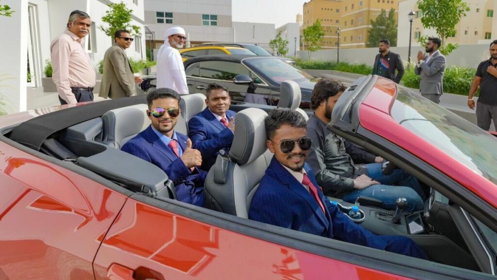 Mekanın dışında onları bekleyen lüks arabalar vardı — Ferrari, Lamborghini, Bentley, Ford Mustang ve Cadillac gibi – daha sonra onları Dubai’ye götürdü.