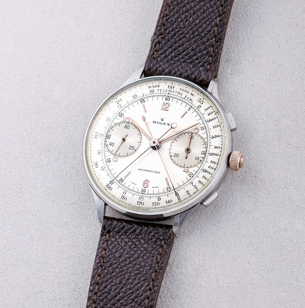 1940’larda üretilen sadece bir düzine Rolex Reference 4113 üretildi ve bugüne kadar yalnızca dokuzunun hayatta kaldığı biliniyor. Üreticinin şimdiye kadar ürettiği ve nadirliğinin altını çizen tek ‘saniyeye bölünmüş’ vintage kronograf. Saat, sürücülerin ve takım sahiplerinin elinden geçen birçok örnekle motor yarışlarıyla yakından ilgilidir.