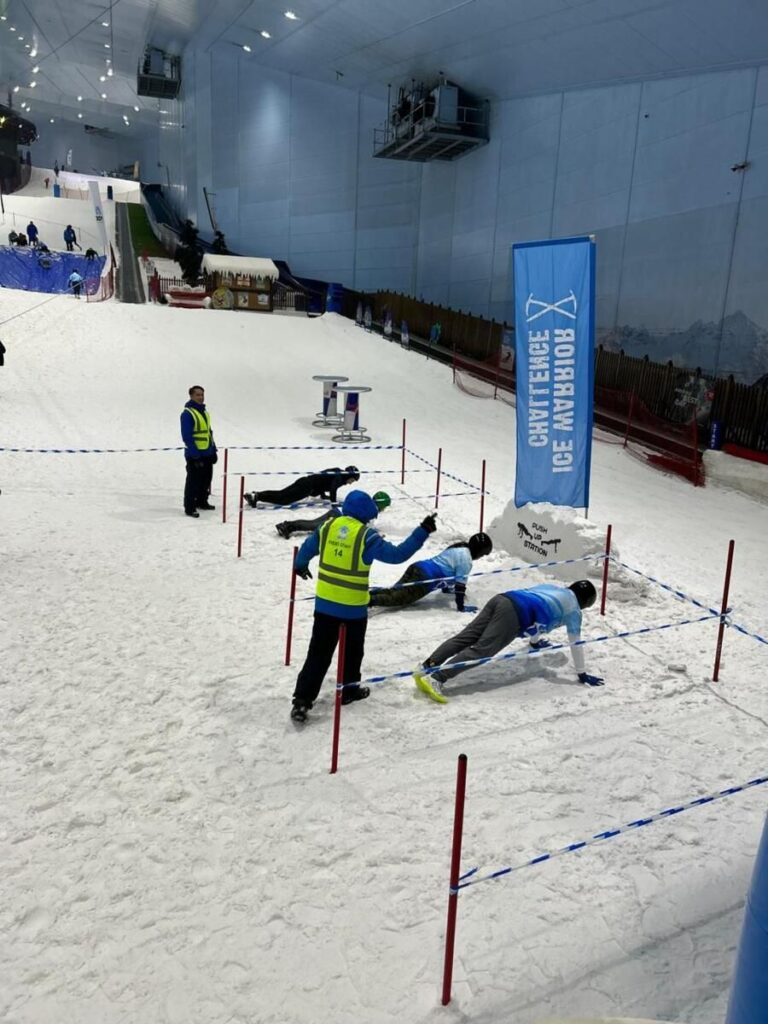 Buz sporları meraklıları, tecrübeli sporcular ve yeni gelenlerden oluşan bir karışım, ortak bir heyecan duygusuyla birleşen Buz Savaşçısı Mücadelesinin 15. baskısı için Ski Dubai’de toplandı. Pazar sabahı düzenlenen etkinlik, Mall of the Emirates’i 20’den fazla engeli olan kış temalı 3,5 km’lik bir saldırı parkuruna dönüştürdü.Katılımcılar, duvara tırmanmak, ağların altında sürünmek, karda yuvarlanmak ve hatta soğuk suda yüzmek gibi bir dizi zorlukla karşı karşıya kaldılar. Etkinlik sabah 6.30’da başladı ve yarışmacılar gruplar halinde başladı, her biri bir yarış numarası ve zamanlama çipi takıyordu, hepsi kursu tamamlamaya, madalya ve hatıra gömlekleri kazanmaya hevesliydi.Khaleej Zamanları.Halid ise, “Zordu. Koşmaya alışkınız ama karda koşmak farklı. Çok fazla engel vardı ama deneyimden gerçekten keyif aldım.” Bağlılıkları, etkinliği tanımlayan coşku ve ekip çalışmasını sergiledi.