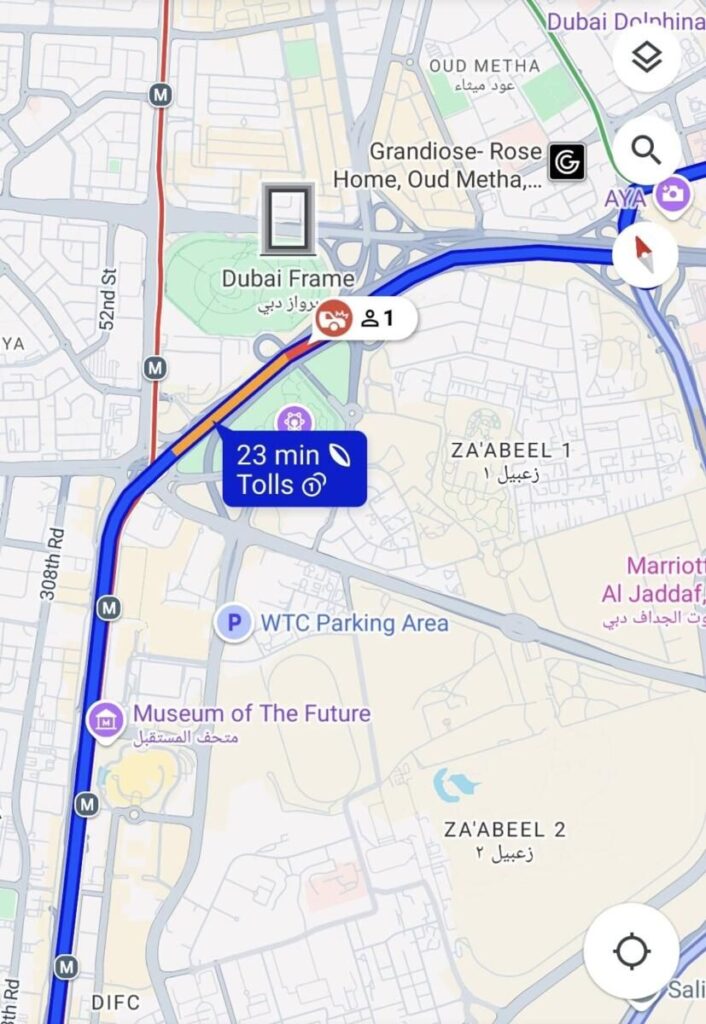 Pazartesi günü Şeyh Raşid Yolu üzerinde, sabahın yoğun olduğu saatlerde, çoğu sakin işe giderken bir trafik kazası meydana geldi.Dubai Polisine göre olay, Ticaret Merkezi Tünelinin Al Garhoud Köprüsü’ne doğru çıkışından sonra meydana geldi.Sürücüler bölgedeki trafik sıkışıklığı konusunda uyarıldı ve dikkatli sürmeleri tavsiye edildi.Google Haritalar, yavaş hareket eden trafiği gösteren kırmızı ve turuncu işaretlerle Dubai Çerçevesine yakın rotada beklenen gecikmeleri gösterdi.