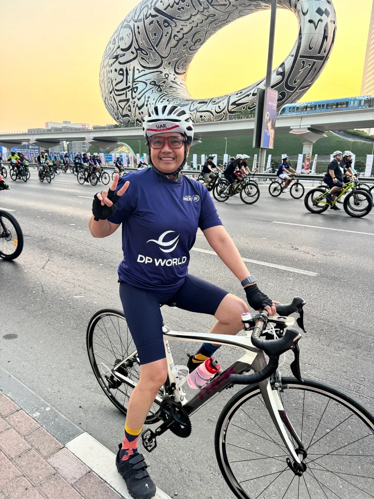 7 Yaşındaki Vihaan ve babası Sreeraj için etkinliğe ilk kez katıldılar. Sreeraj, ”Şeyh Zayed Yolu’nda bisiklet sürme deneyimine sahip olmasını istedim” dedi. “Bu tür deneyimlerin çocuklar için önemli olduğunu düşünüyorum. Ben de onu 4:45’te uyandırdım. Gerçekten heyecanlıydı.”