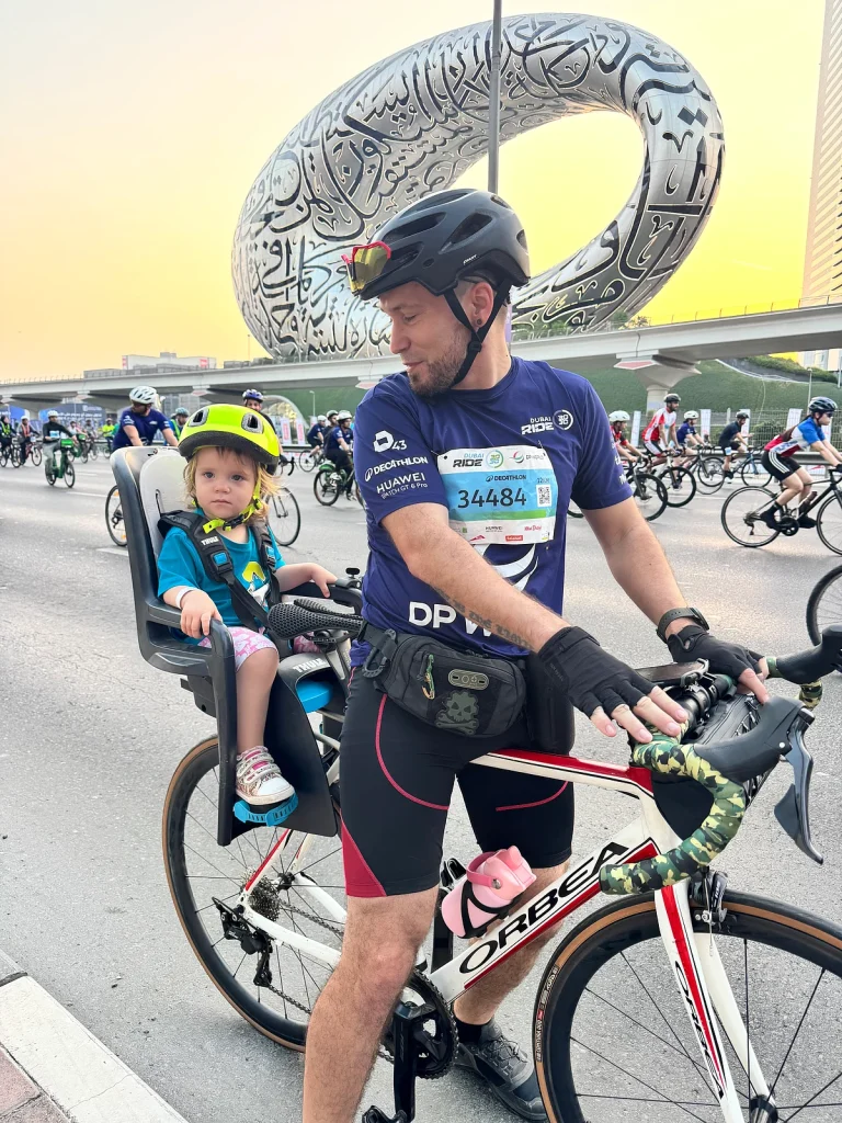 1 yaşındaki Diana için ne sabahın erken saatlerinde uyanmak ne de kalabalıklar, babası Dmitrii ile Şeyh Zayed Yolu boyunca yolculuğun tadını çıkarmanın önünde bir engel teşkil etmedi. Babasının arkasındaki çocuk koltuğunda otururken pisti gözlemledi ve manzaralara daldı.Ukrayna’dan gelen bu, baba-kız ikilisinin Dubai Yolculuğu 2025’e ilk kez katılmasıydı. Gururlu baba, ”Ata binmeyi seviyor,” dedi Khaleej Times, onu kontrol etmek için Geleceğin Müzesi’nin önünde bir pitstop yaparken. “Sekiz aylıktan beri onunla biniyorum ve bu bizim zamanımız.”