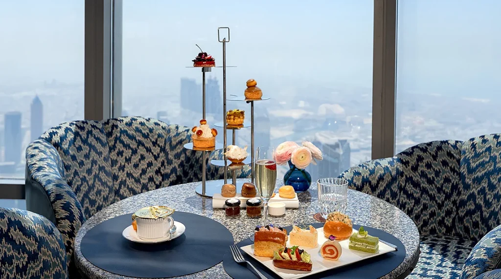 Konuklar At’de dünyanın en ikonik ikindi çayı deneyimlerinden birinin tadını çıkarabilirler.Burç Halife’de Dubai’nin 122 kat yukarısında yer alan mosphere Lounge &Bar, silüetin muhteşem manzarasının zarif bir kaçışın tonunu belirlediği yerdir. Her gün saat 12’den akşam 4’e kadar servis edilen deneyimde narin mini sandviçler, pıhtılaşmış krema ve reçelli taze pişmiş çörekler, sanatsal hamur işleri, seçkin ana yemekler ve küratörlüğünde sıcak ve serinletici içecekler sunulmaktadır. Konuklar kişi başı 450 Dh’den La Gourmandise, 550 Dh’den Köpüklü İkindi Çayı veya 850 Dh’den Lüks İkindi Çayı arasında seçim yapabilir.