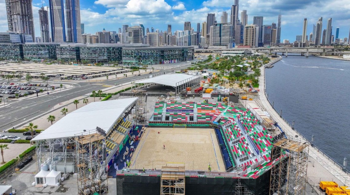 Fifa Plaj Futbolu Dünya Kupası BAE 2024 Dubai’nin organizatörleri, kayda değer bir hız ve verimlilik başarısıyla, turnuvanın muhteşem stadyumunu Dubai Tasarım Bölgesi’nde rekor kıran 25 günde inşa ederek bu tür tesislerin inşa edilmesinde daha önceki rekoru kırdı.