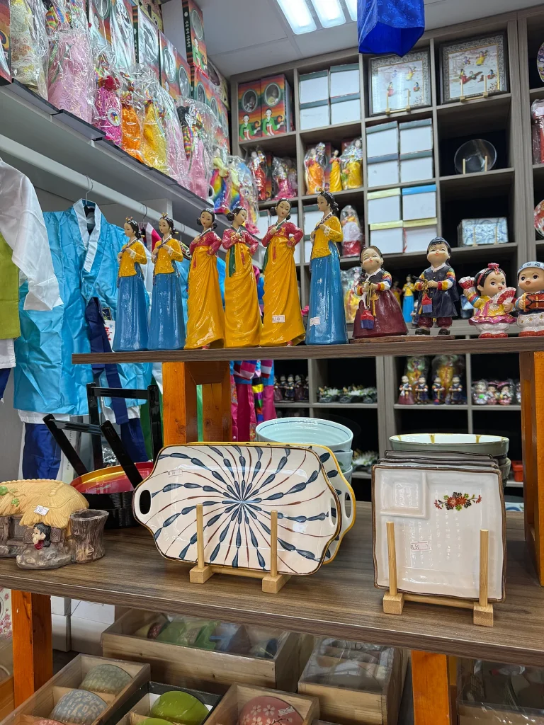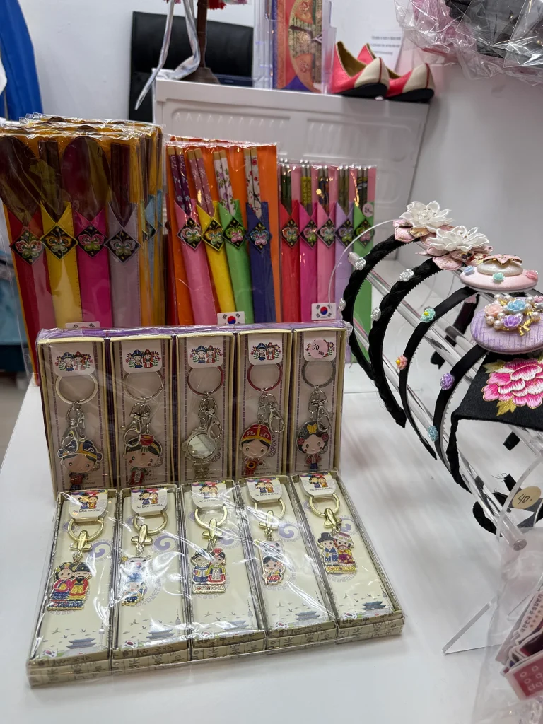 Pavyonda ayrıca hanbok giyen figürinler, geleneksel maskeler, hat sanatı ve Kore kırtasiye malzemeleri gibi otantik Kore hediyelik eşyaları da bulunuyor.