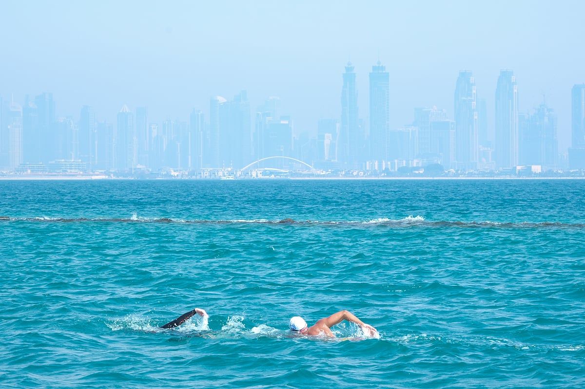 Dubai’de yaşayanlar Maher El-Tabchy ve Eric Robertsen, birkaç yıldır dayanıklılık yüzme sevgisini paylaştılar.
