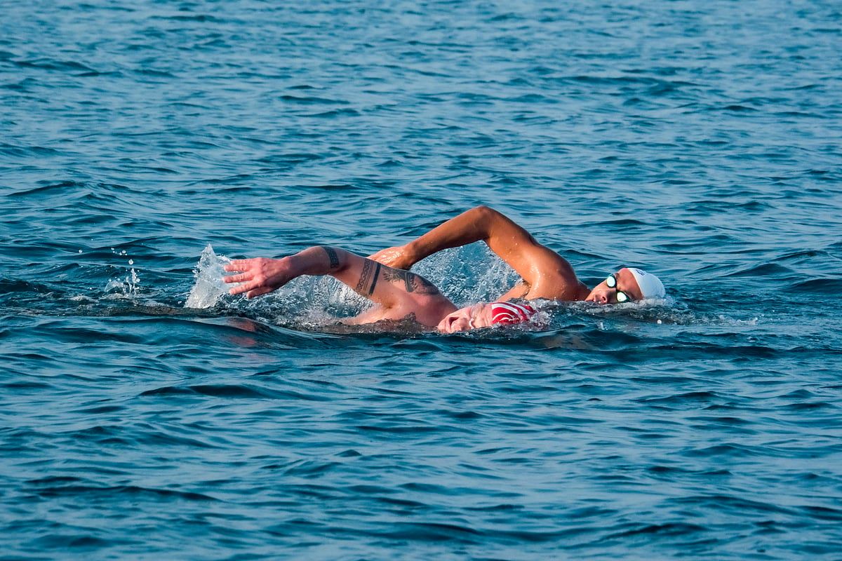 Lübnan’dan gelen El-Tabchy ve Fransız Robertsen, 15 Mart’ta Dünya Adalarından kıyıya 10 saat boyunca durmadan yüzdüler.