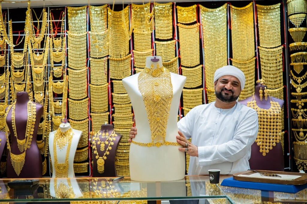 Guinness Rekorlar Kitabı’ndaki en ağır altın yüzükten eşsiz süslemelere kadar Dubai’nin altın çarşısı, ışıltısı ve cazibesiyle tanınır. Platin, pırlanta ve bazen gümüş de satan çarşıda yaklaşık 400 perakendeci bulunuyor.