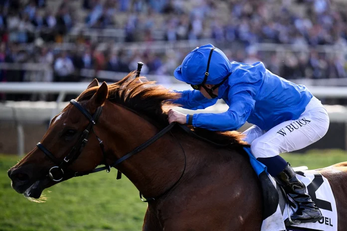 William Buck’ın büyük bir güvenle bindiği süperstar aygır Dubawi’nin ev sahibi oğlu, çarpıcı ayak dönüşüyle, en sevdiği Zorlu Adamdan bir buçuk kat daha net bir şekilde yükselmek ve kazanmak için etkileyici bir şekilde hızlanmadan önce, ray boyunca uzanan bir boşluğu ele geçirdi. , John Velazquez dağı.