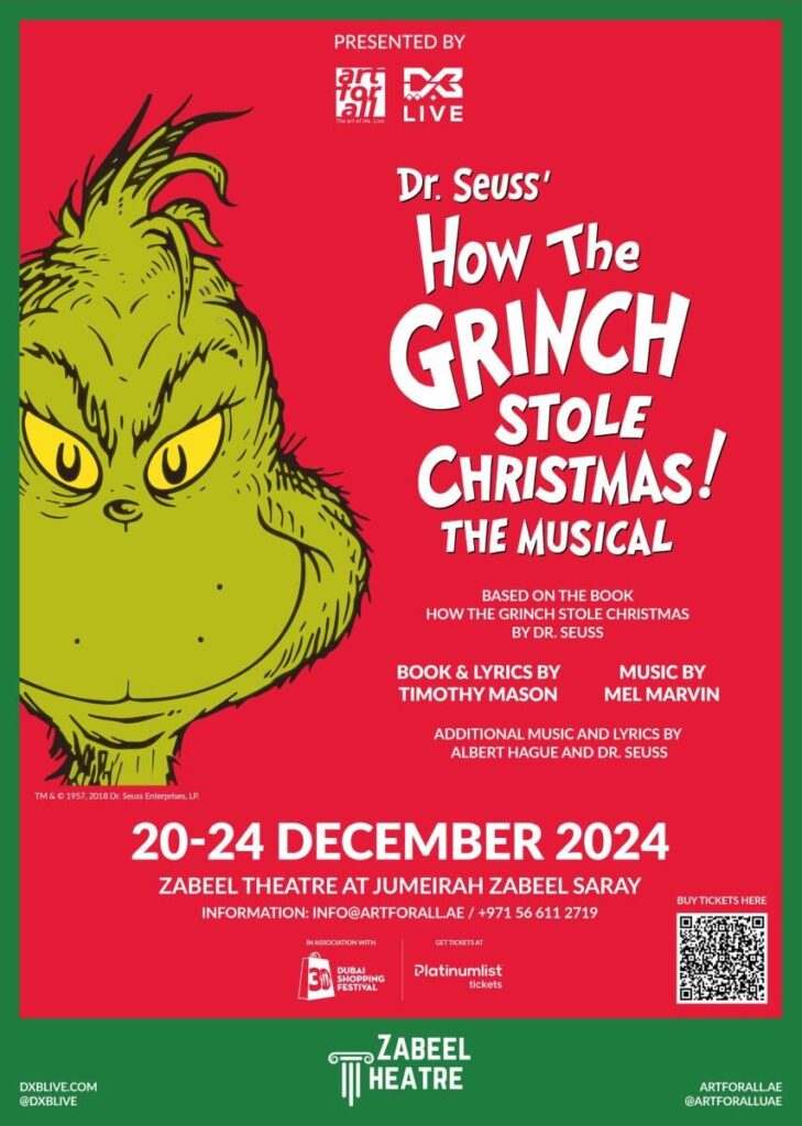 Grinch şehre geliyor ve tüm yeşil, huysuz ihtişamını ilk kez BAE sahnesine taşıyor! Noel’in daha büyülü olamayacağını düşünüyorsanız, tekrar düşünün – Dr. Seuss’un Grinch’in Noel’i Nasıl Çaldığını Müzikal bu Aralık ayında Zabeel Tiyatrosu’nda ilk kez sahneye çıkıyor ve kahkaha, müzik ve doğru miktarda aile dostu bir tatil deneyimi vaat ediyor yaramazlık.Grinch’e aşina olmayanlar için (gerçekten mi?), o nihai Noel alaycısıdır — Noel’i neşeli Who’lardan çalmaya başlayan “iki beden çok küçük” kalbi olan huysuz bir münzevi. Ama tüm güzel hikayelerde olduğu gibi, işler planlandığı gibi gitmiyor!Bu BAE çıkışının arkasındaki beyni, sahnede festival büyüsü yaratmaya yabancı olmayan Olivier Ödüllü yapımcı Paul Taylor-Mills’tir. Geçen yıl Dubai’de Müzikal Elf’i yakalayacak kadar şanslıysanız, yapımlarına ne tür bir enerji ve eğlence getirdiğini tam olarak bileceksiniz.