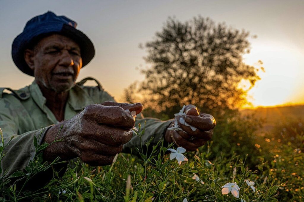 Haziran’dan Ekim’e kadar, çocuklar da dahil olmak üzere aileler, geleneksel olarak gece yarısı ile şafak arasındaki tarlalara giderek en yoğun kokuda yasemini elle seçerler.
