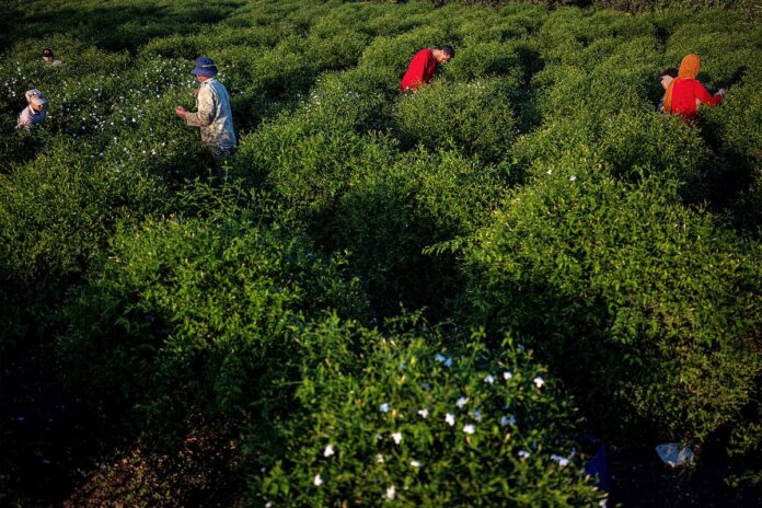 Ülkenin en büyük işlemcisi olan Fakhry & Co’ya göre Mısır, dünyadaki yasemin betonunun neredeyse yarısını üretiyor, bu bitkiden tasarımcı kokuları için hayati bir temel oluşturan ve milyonlarca dolarlık bir ihracat olan mumsu bir özüt.