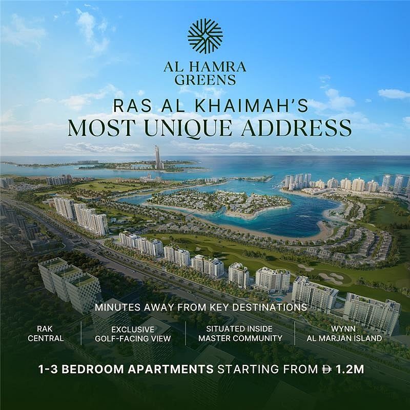 Ras Al Khaimah’ın yaklaşmakta olan amiral gemisi canlı çalışma yeri olan RAK Central’ın karşısında yer alan Al Hamra Yeşillikleri, RAK Central, Al Hamra Şampiyonası Golf Sahası ve Wynn Al Marjan Island Resort’un panoramik manzaralarını sunmaktadır.